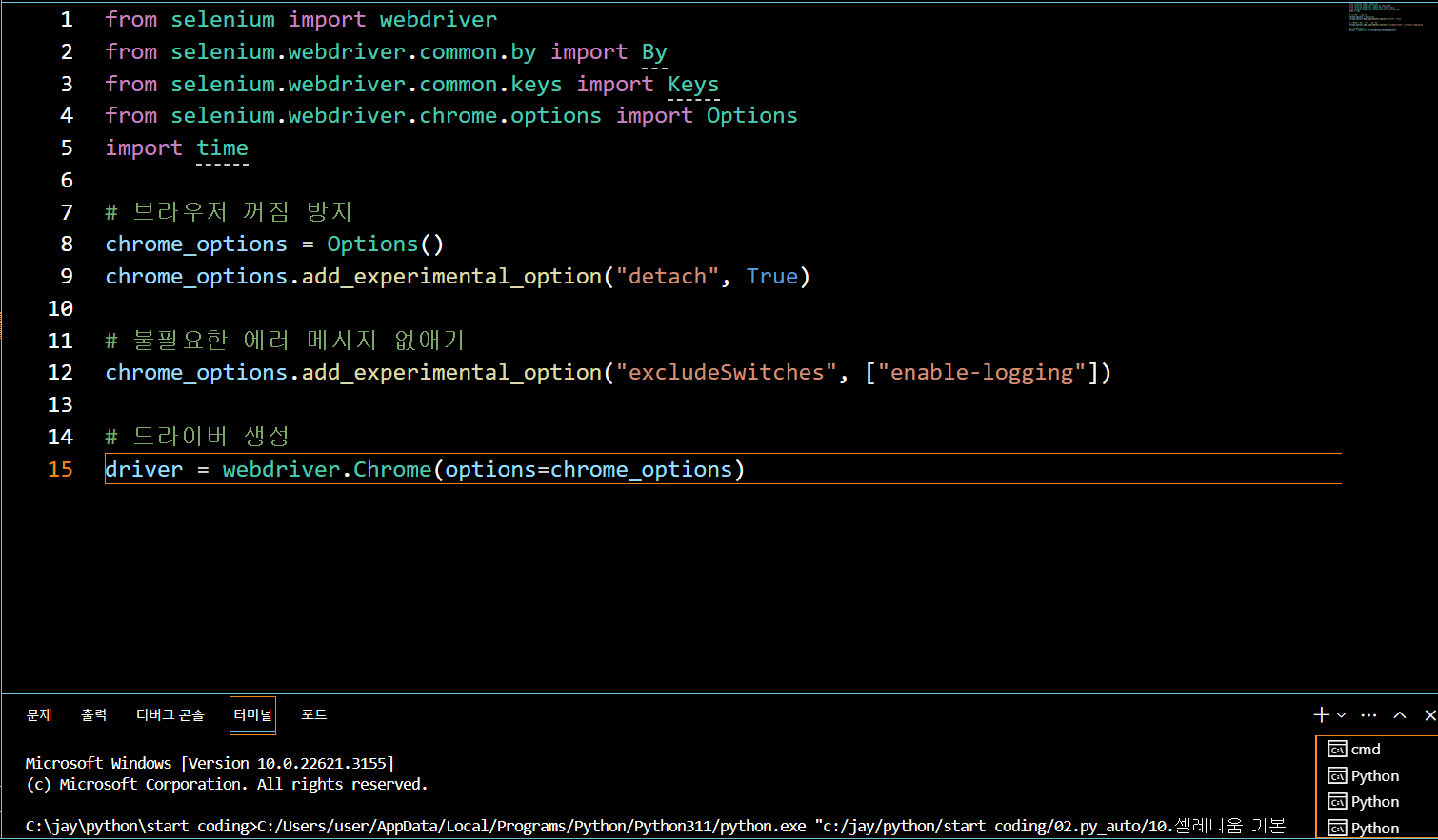위 단계를 따라서 PATH에 크롬 드라이버 경로를 추가한 후에는 해당 오류가 해결될 것입니다.