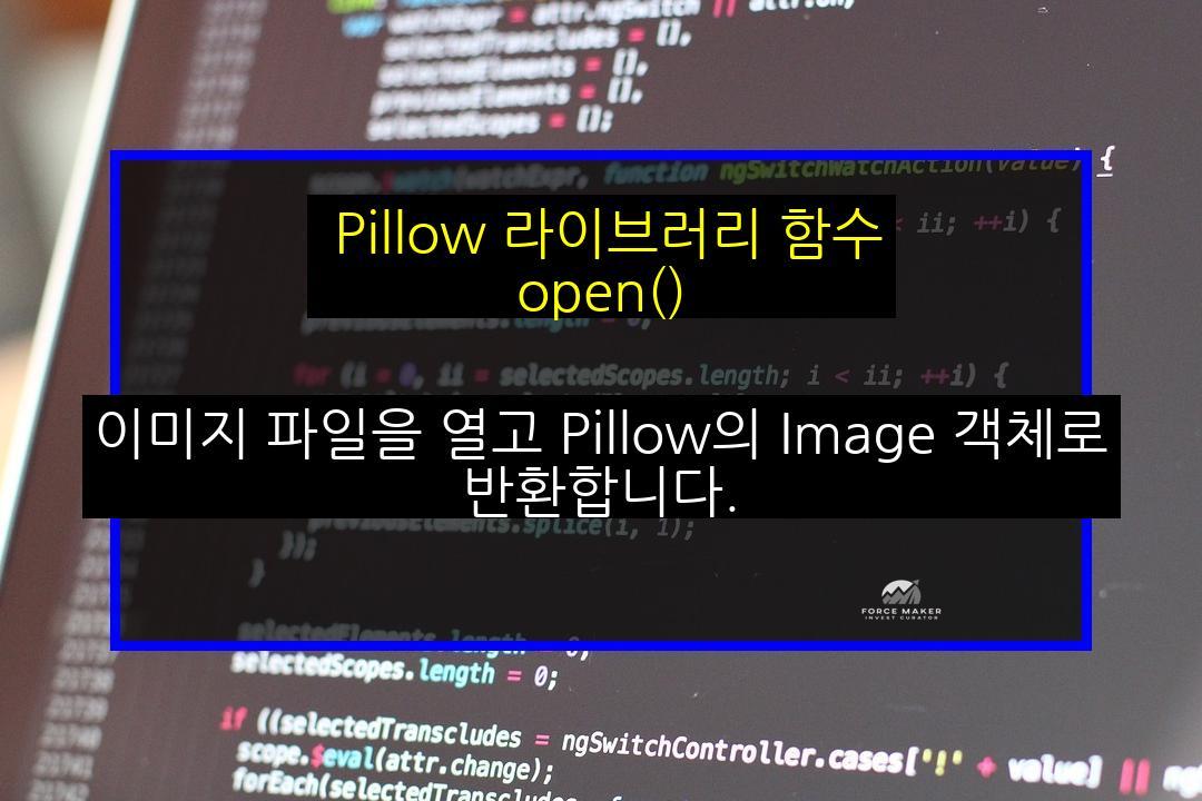 Pillow는 Python에서 이미지 처리를 위한 라이브러리입니다. 이미지의 열기, 저장, 수정, 변환 등의 다양한 작업을 수행할 수 있습니다. 대부분의 이미지 포맷을 지원하며, 이미지 크기 조정, 회전, 필터링, 색상 조정 등의 작업을 지원합니다. Pillow은 Python Imaging Library (PIL)의 포크로 시작되었으며, 현재는 PIL의 대안으로 널리 사용되고 있습니다.