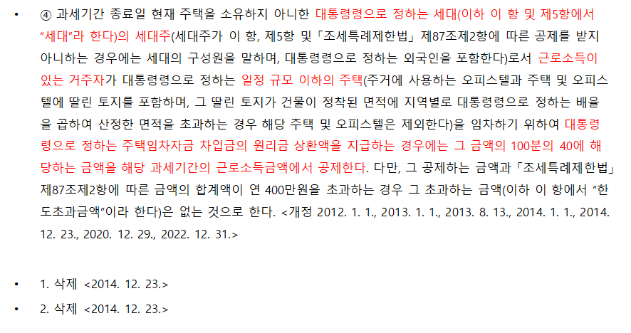 연말정산시 주택임차차임금 원리금 상환액 공제 등 공제를 받기 위해서는 기준을 명확하게 알고 있어야 한다.