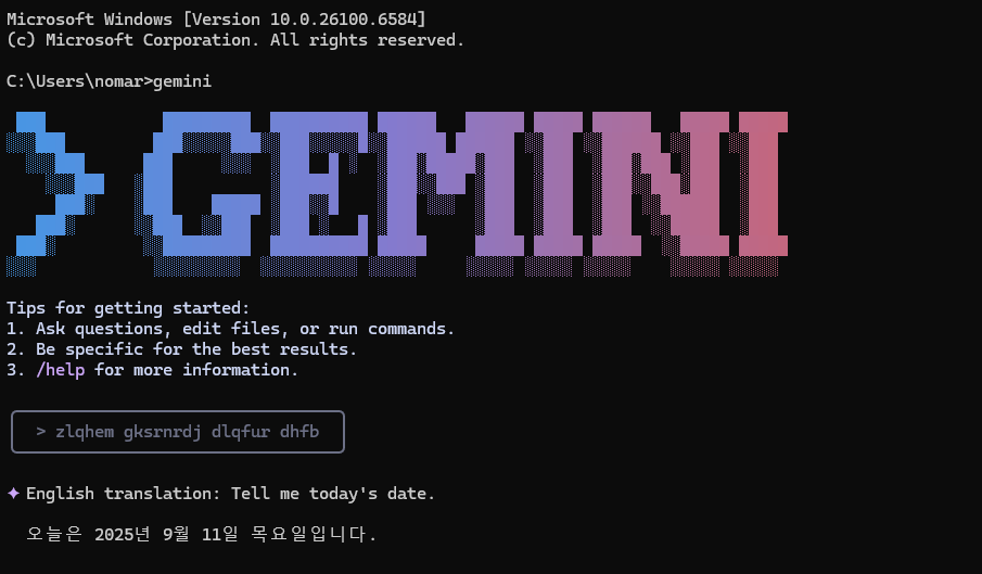 - 터미널에서 Gemini CLI 실행 후, 아래처럼 입력: